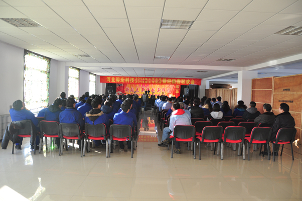 2015年2月1日,河北羿珩科技召開了2014年度工作總結(jié)暨2015年工作安排會議,公司董事長張潔女士、副董事長馮軍智先生、總經(jīng)理趙際勤先生及全體員工參加了此次會議。