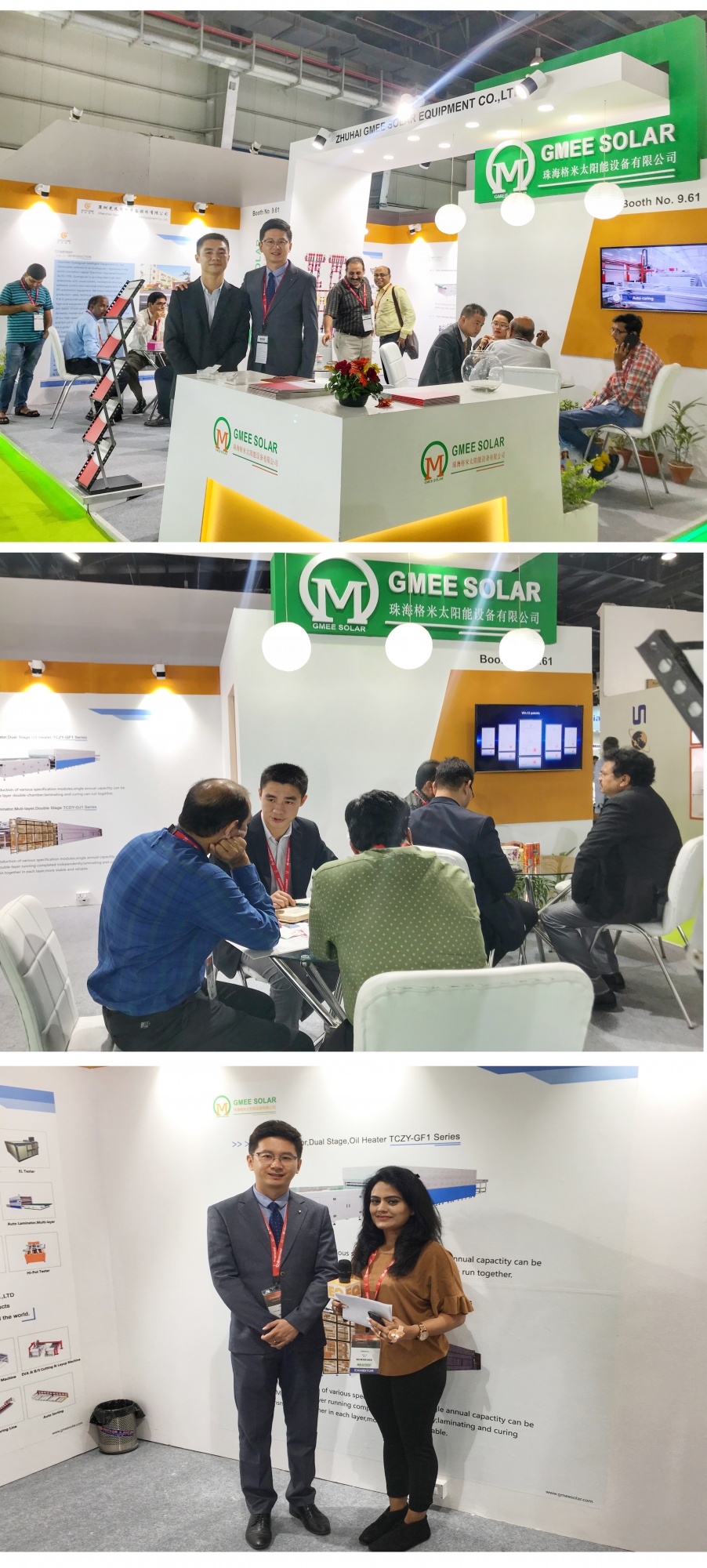 2018年9月18日至20日,河北羿珩科技有限責(zé)任公司(以下簡(jiǎn)稱:羿珩科技)與其印度地區(qū)獨(dú)家代理珠海格米太陽(yáng)能設(shè)備有限公司(以下簡(jiǎn)稱:珠海格米),共同參加了2018年度印度國(guó)際可再生能源展。展會(huì)現(xiàn)場(chǎng),來(lái)自印度及全球各地的組件客戶對(duì)羿珩科技推出的全自動(dòng)疊焊機(jī)、雙層三腔全自動(dòng)層壓機(jī)等一系列新產(chǎn)品表示極大興趣,紛紛駐足展位現(xiàn)場(chǎng),并認(rèn)真交流、了解最新技術(shù)及新產(chǎn)品應(yīng)用。