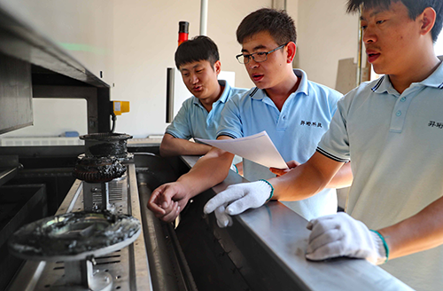 圖為工人查看測試使用的聯(lián)軸節(jié)。